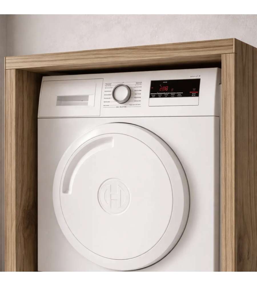 Base porta lavatrice/asciugatrice a giorno in truciolare nobilitato finitura noce. Design robusto e funzionale, altezza 91 cm, lunghezza 79 cm, larghezza 65 cm. Ottimizza lo spazio in lavanderia con una portata fino a 250 kg.Altro 1: