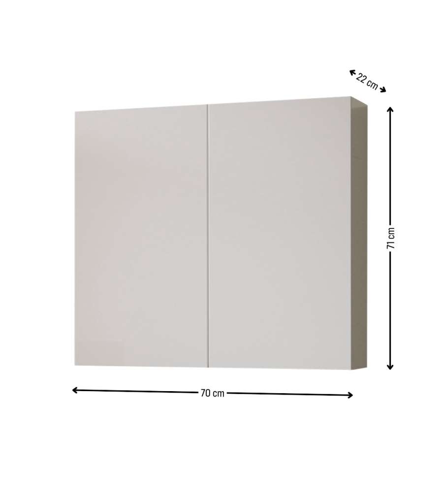 Pensile elegante e pratico, con ripiani in vetro e 2 ante ad apertura push and pull. Colore bianco lucido, ideale per ottimizzare lo spazio nel bagno. Dimensioni: 70x22x71 cm.