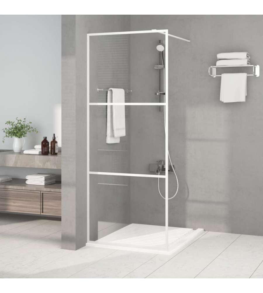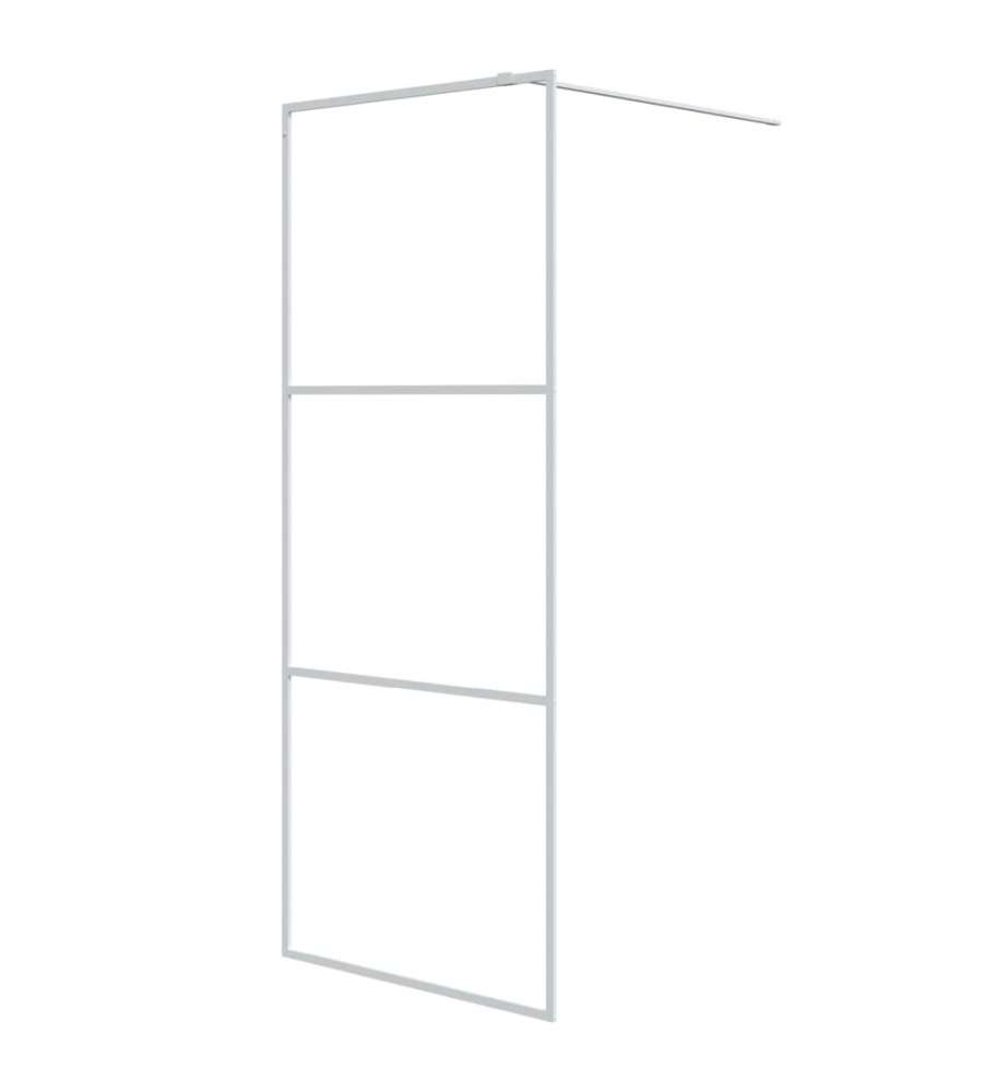 Colore telaio: Bianco Materiale: Vetro temperato trasparente ESG, alluminio Dimensioni: (79-80)x195 cm (LxA) Spessore vetro: 5 mm Telaio regolabile in larghezza di 1 cm Lunghezza della barra di supporto: 100 cm (senza regolazione)Altro 6: