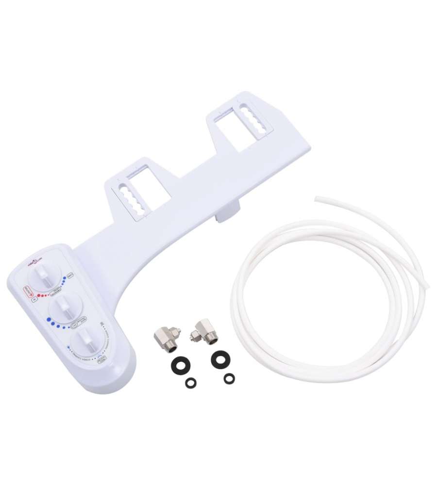 Questo bidet, con sistema di fissaggio per tavoletta del WC, migliora l'igiene personale e aiuta a prevenire le emorroidi. Inoltre, riduce il consumo di carta igienica. La caratteristica più interessante di questo accessorio per il bagno è che funziona senza elettricità ed è molto facile da installare. Questo bidet è dotato di doppi ugelli autopulenti, uno dei quali è stato appositamente progettato per le donne. La pressione e la temperatura dell'acqua possono essere regolati secondo le proprie esigenze.