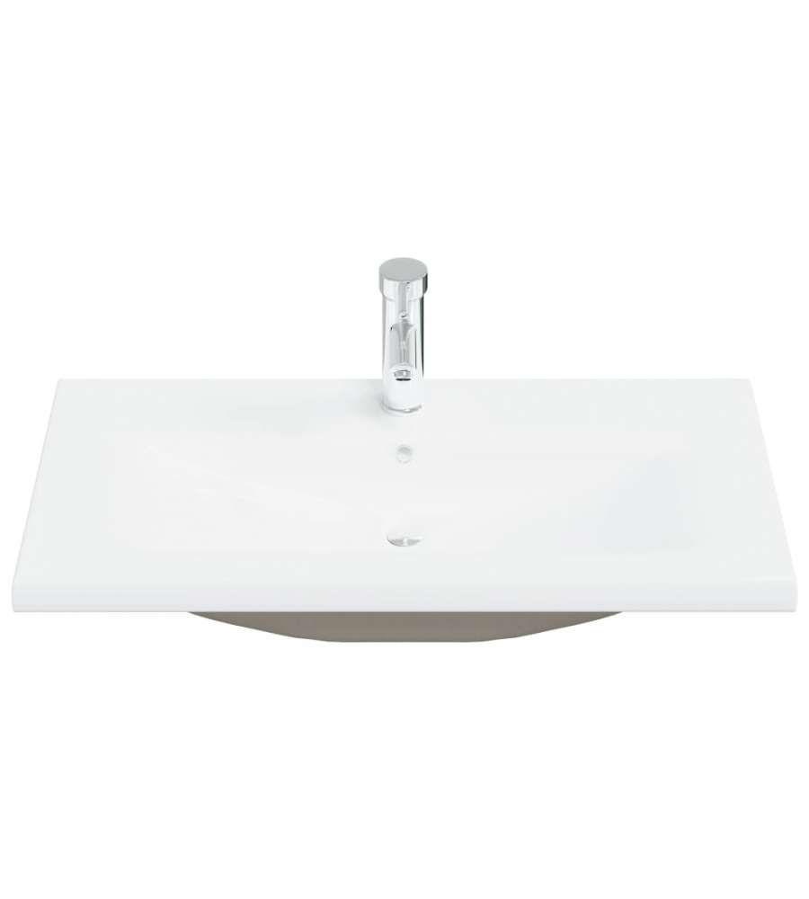 Colore: Bianco Materiale: Ceramica Dimensioni lavabo: 81x39x18 cm (LxPxA) Spessore bordo in ceramica: 4 cm Diametro del foro di scarico: 4,5 cm Con foro di trabocco Con rubinetto Scolo a spinta con funzione di troppopieno