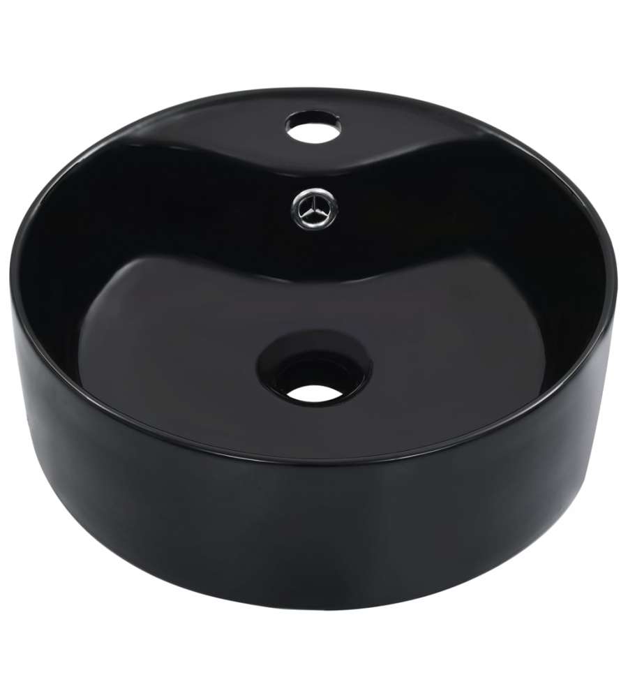 Colore: Nero Materiale: Ceramica Dimensioni complessive: 36x13 cm (DiametroxA) Diametro del foro di scarico: 4,5 cm Foro per il rubinetto: 3,5 cm Tipo di installazione: Su piano di appoggio Con troppopieno e foro per rubinetto