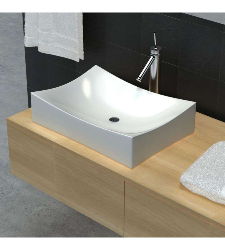 Caratterizzato da un design bianco splendente, questo lavello offre uno stile moderno e unico per ogni bagno. Con pareti inclinate laterali, un fondo piatto e curve morbide, il bacino da bagno aggiunge un design contemporaneo nel vostro bagno. Il lavabo ? realizzato in ceramica di qualit?, prevenendo i graffi o scheggiature.