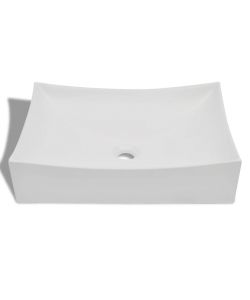 Materiale: Ceramica Dimensioni: 65,5x39x14 cm (LxPxA) Foro di scarico (?): 4,5 cm Colore: Bianco Tipo di installazione: Su piano di appoggio