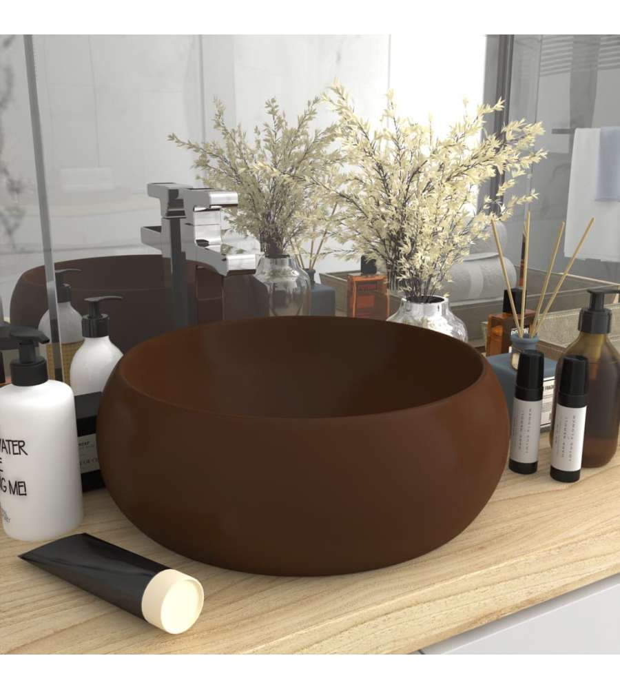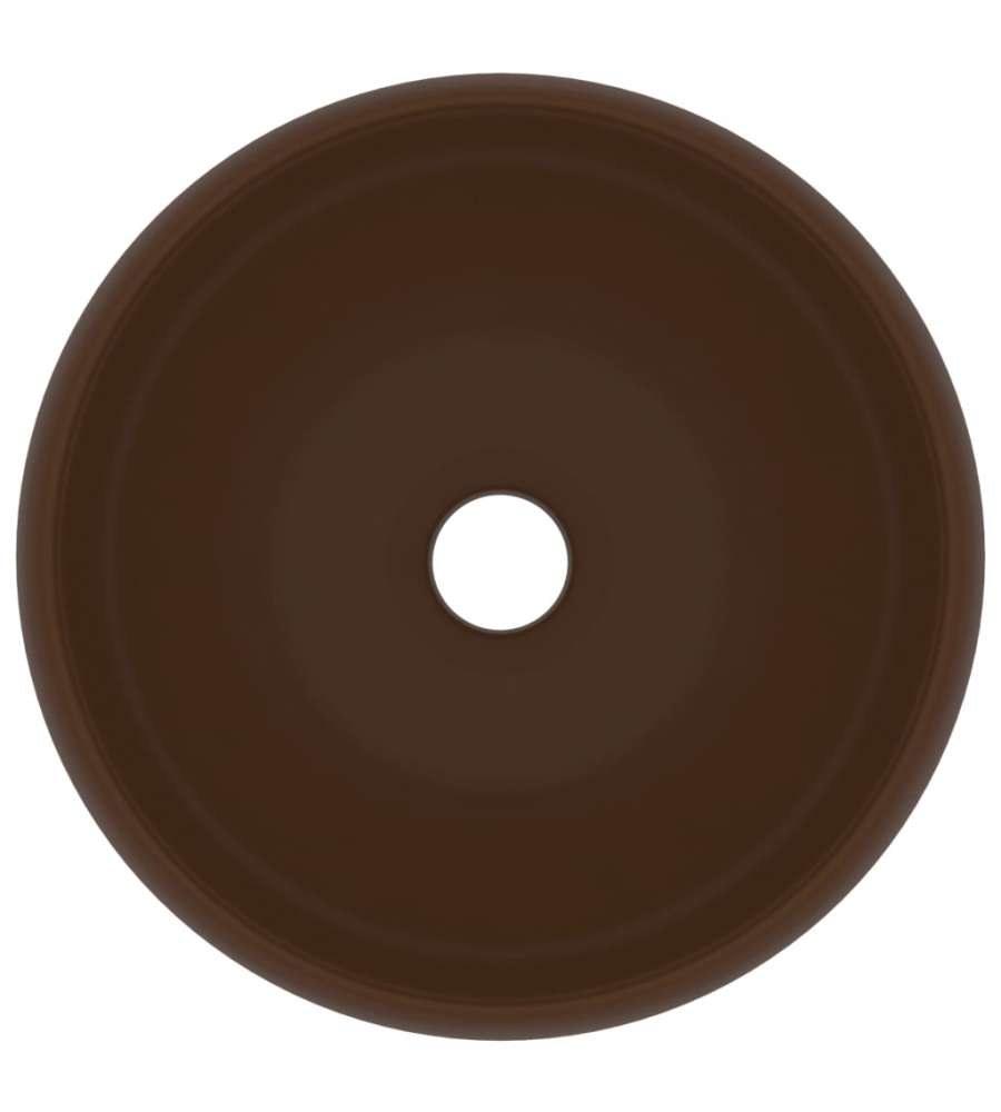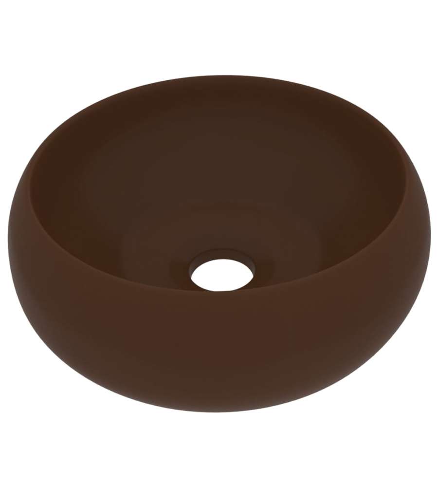 Colore: Marrone scuro opaco Materiale: Ceramica Dimensioni complessive: 400x150 mm (DiametroxA) Diametro del foro di scarico: 4,5 cm Presenta superficie opaca e design di lusso Tipo di installazione: Su piano di appoggio