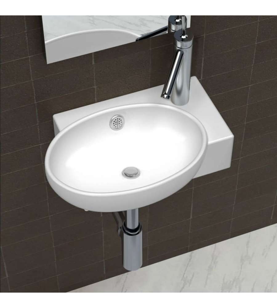 Realizzato in ceramica di qualit?, il lavabo non si graffia e non si scheggia. Resistente alla corrosione e durevole, ? anche facile da pulire. Il lavabo ? adatto per essere montato sul piano di lavoro o fissato al muro. Grazie al foro di troppo pieno, non ? necessario preoccuparsi per l'acqua che fuoriesce.