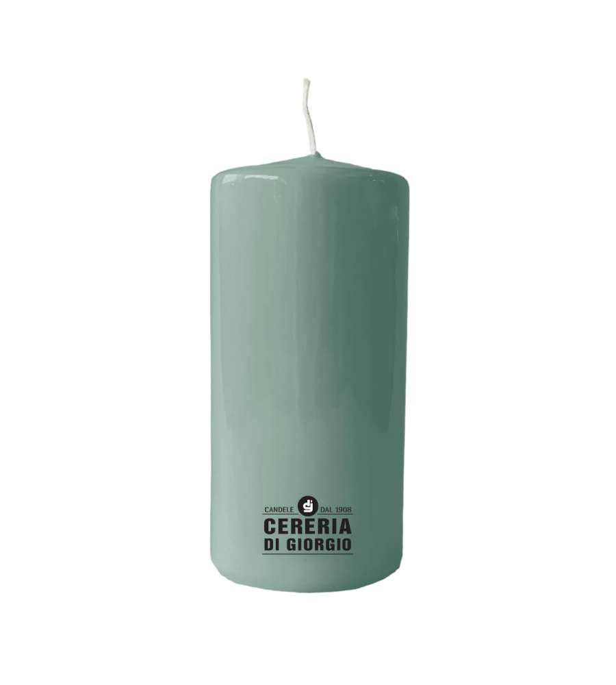 Candele rotonde in cera, altezza 15 cm e diametro 7 cm, colore Vintage Green. Stoppino in puro cotone, senza profumo, durata fino a 85 ore. Ideali per matrimoni e anniversari, confezionate singolarmente. Uso interno.Uso interno: