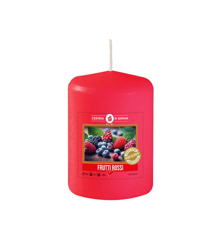 Descrizione: Candela profumata ai Frutti Rossi, Ø 7 cm, alta 10 cm. Realizzata in vetro, senza allergeni. Durata 52 ore, fragranza intensa per ambienti accoglienti. Perfetta per ogni occasione.