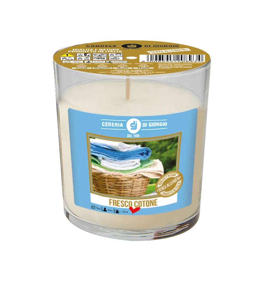 Descrizione: Scopri la candela profumata in bicchiere di Cereria di Giorgio, realizzata in cera vegetale con stoppino in cotone. Design elegante, profumo floreale e durata di 25 ore per un'atmosfera unica.
