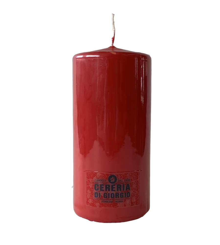 Candela rotonda alta 15 cm e larga 7 cm, colore rosso. Realizzata in cera minerale raffinata, con stoppino in puro cotone. Lunga durata di 85 ore, ideale per decorazioni in matrimoni e anniversari. Inodore e confezionata singolarmente.Uso esterno: