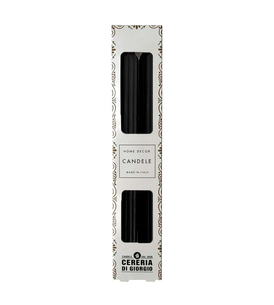 Set di 2 candele decorative scanalate, altezza 25 cm e diametro 2,2 cm. Colore nero opaco, inodore e realizzate in cera di paraffina. Durata di combustione di circa 8 ore, ideali per matrimoni e decorazioni. Design classico e stabile.Uso interno:
