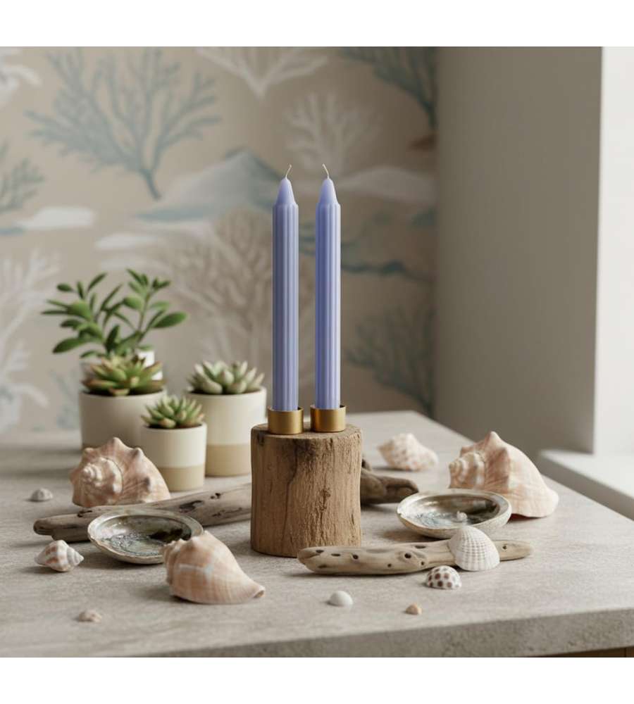 Descrizione: Set di 2 candele decorative scanalate Dorica, colore lavanda, altezza 25 cm e diametro 2,2 cm. Produzione italiana Cereria di Giorgio. Fiamma stabile e durata di combustione di 8 ore. Ideali per ogni occasione.