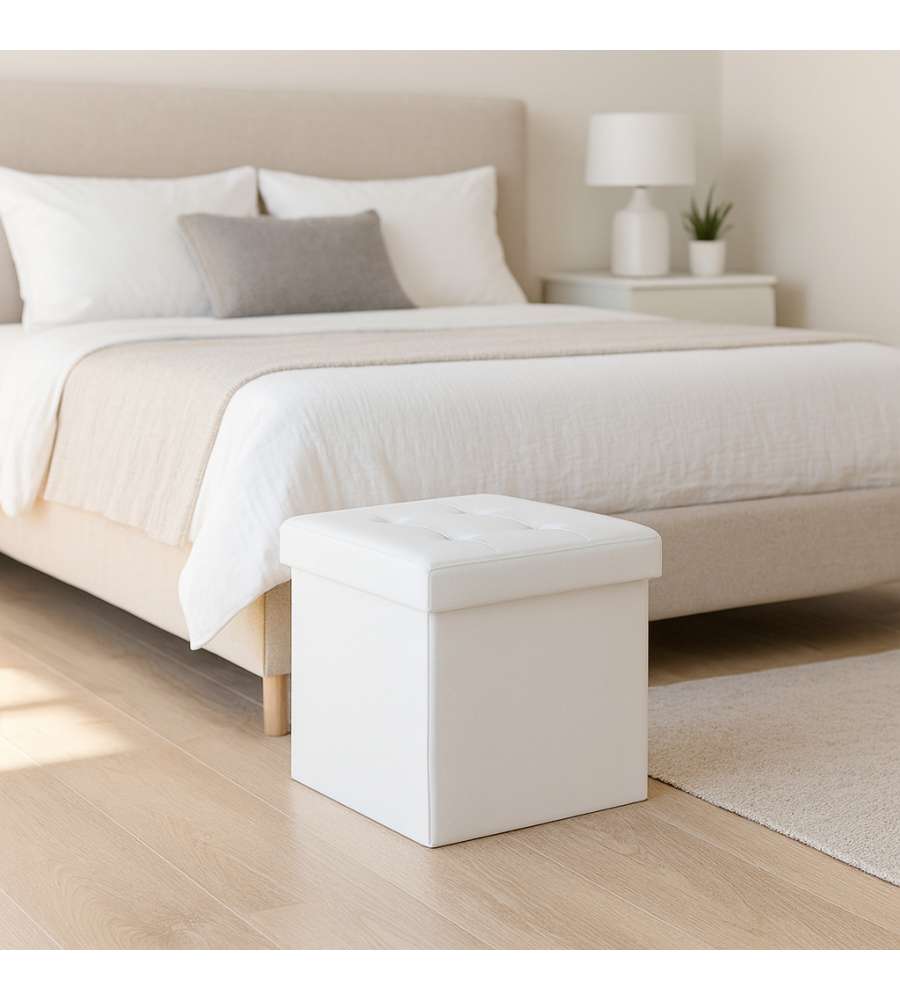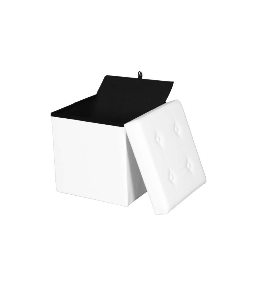 Contenitore salvaspazio pieghevole in tessuto traspirante similpelle, colore bianco. Struttura interna in MDF. Facile da assemblare e riporre. Perfetto per libri, giochi e accessori, ideale per soggiorno e camera.Capacità: