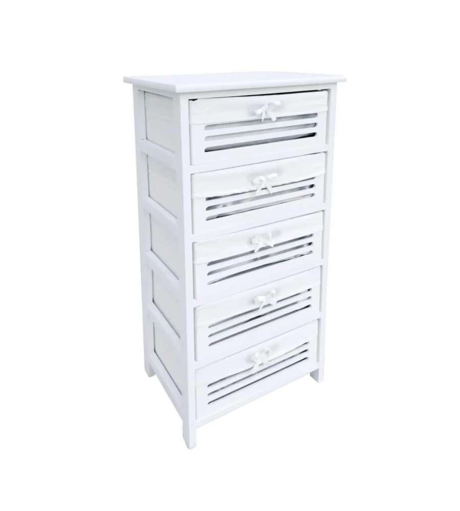 Cassetiera elegante e funzionale con 5 cassetti, ideale per organizzare spazi. Design moderno in bianco, dimensioni 40x90H cm, perfetta per casa o ufficio. Facile da montare e versatile, adatta a ogni ambiente. Marca Bizzotto.Cassetti: