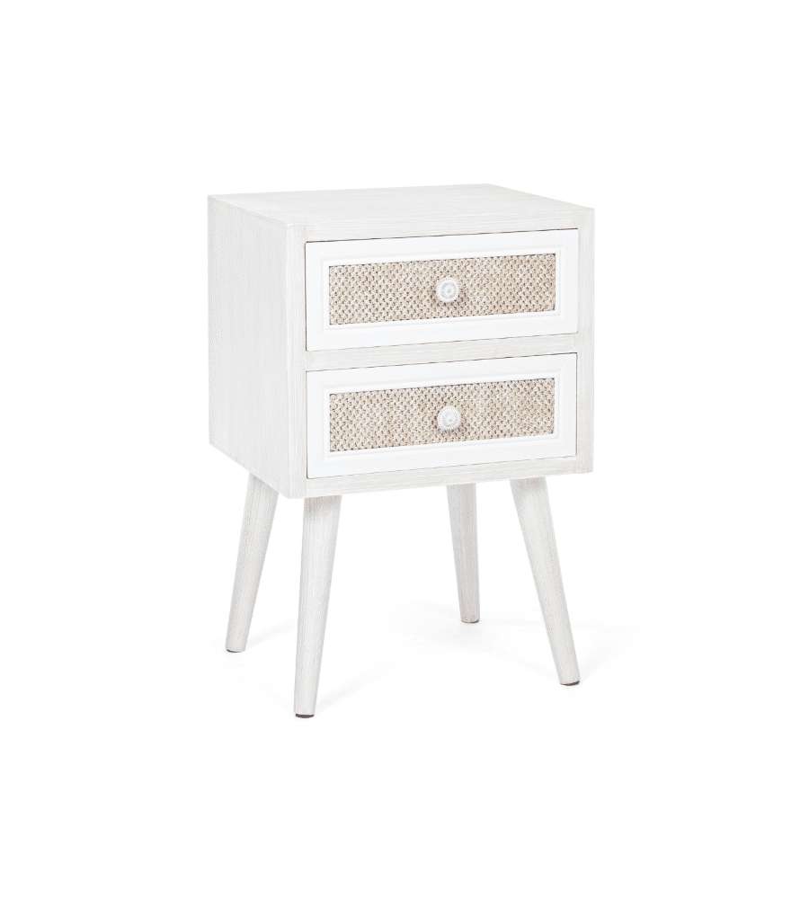 Descrizione: Mobiletto Montiel Bizzotto, elegante e funzionale, con cassetto in tessuto e finitura bianco/noce. Dimensioni compatte (35x30x46,5 cm), ideale per spazi ridotti. Perfetto per ogni ambiente!
