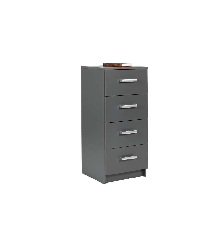 Cassettiera con 4 cassetti in laminato grigio, dimensioni 41,2x40x91,5 cm. Design moderno con maniglie in metallo. Ideale per organizzare spazi in modo elegante e funzionale.Spedizione gratuita: