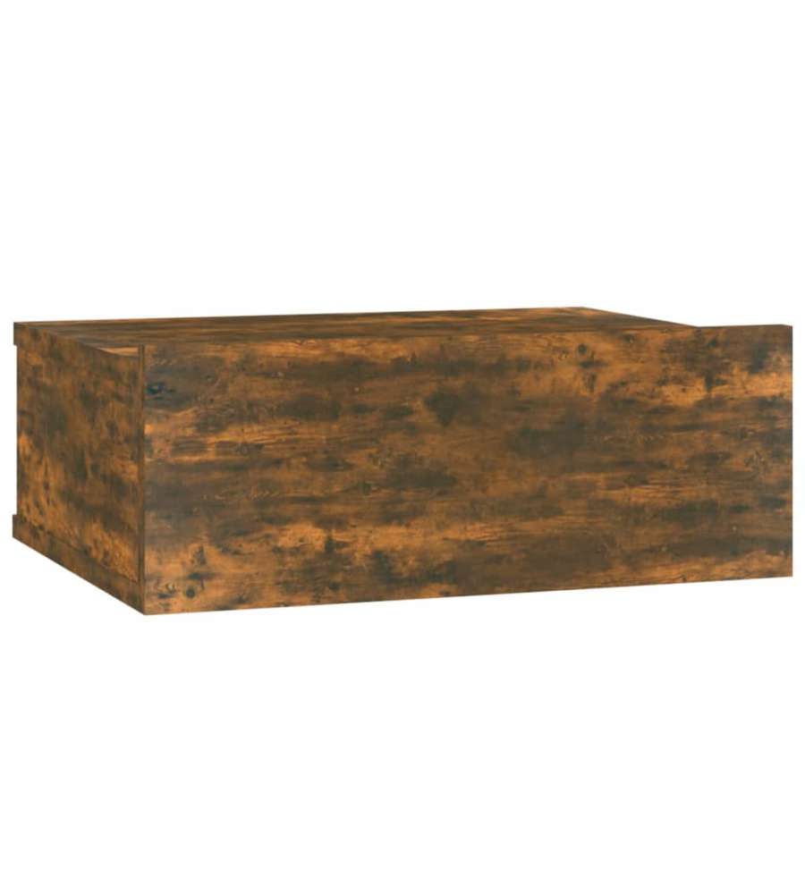 Comodino pensile in rovere fumo, dimensioni 40x30x15 cm. Realizzato in legno multistrato, offre una soluzione di conservazione compatta e ideale per spazi ridotti.
