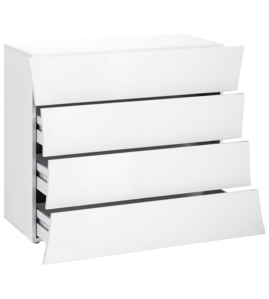 Comò Moderno ARCO con 4 cassetti, design originale e funzionale, 100% made in Italy. Dimensioni: 81,5 h x 98 l x 98 p x 40 pr cm. Realizzato in melaminico bianco lucido. Ideale per ogni ambiente.
