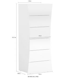 Settimo moderno ARCO con 6 cassetti, design originale e funzionale, 100% made in Italy. Dimensioni: 121,7 h x 50 L x 50 A x 40 P cm. Realizzato in melaminico bianco lucido. Ideale per ogni ambiente.