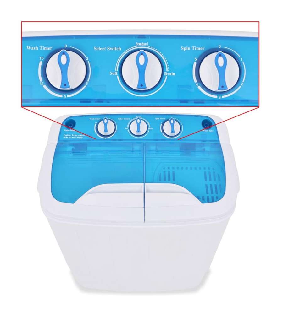 Questa lavatrice ha un design speciale a doppia vaschetta, una capacit? di lavaggio totale di 3,6 kg e una capacit? centrifuga di 2 kg. Il suo timer incorporato di 15 minuti spegne automaticamente la macchina dopo ogni ciclo di lavaggio e il ciclo di centrifuga ha un timer di 5 minuti.
