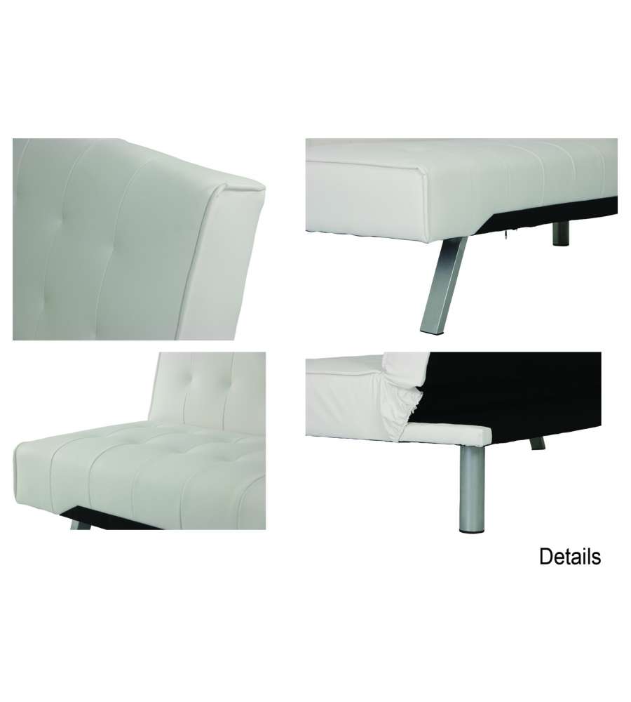 Divano letto Clic Clac in PVC bianco, 3 posti. Misure divano: 180x80x77 cm, letto: 180x95x38 cm. Trasformazione facile in letto singolo. Leggero (23 kg), con copertura effetto ecopelle.Altezza seduta: