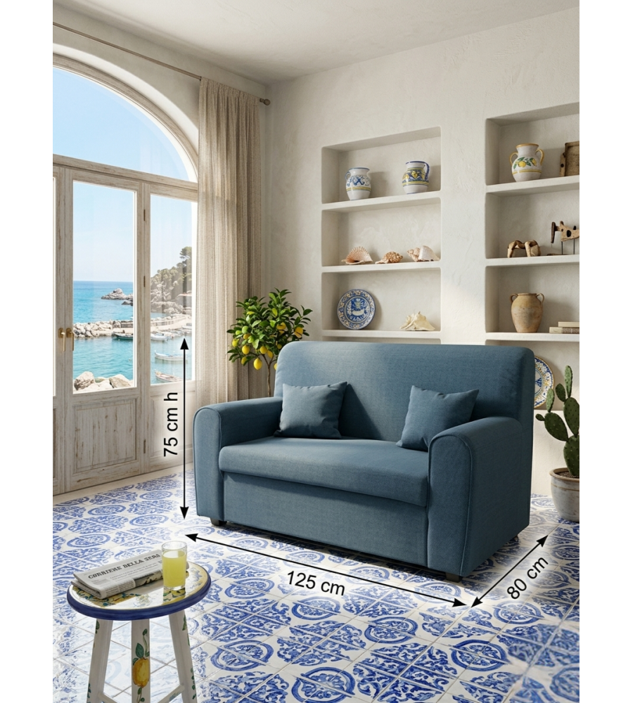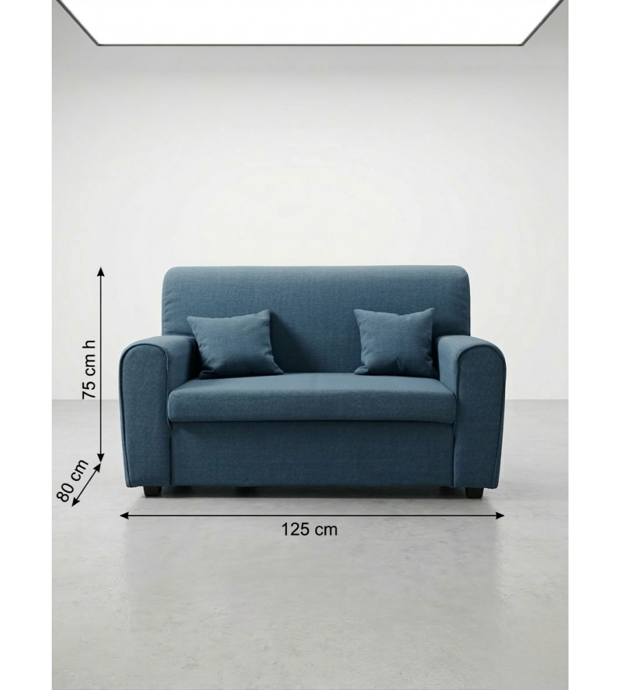 Descrizione: Divano Mini Estasi 2 posti blu, 125x80x75 cm, perfetto per spazi ridotti. Comfort ergonomico, cuscini morbidi e design moderno. Rivestimento resistente, ideale per ogni ambiente interno.