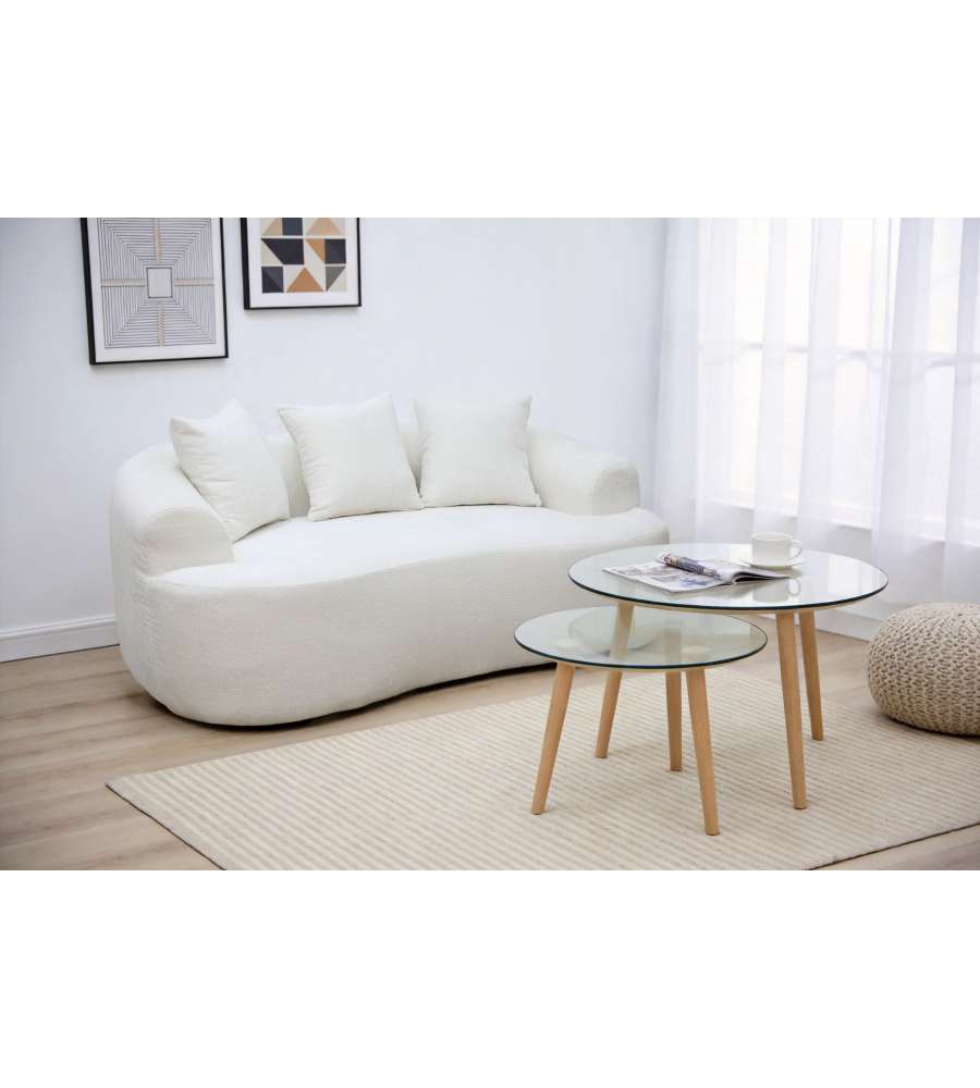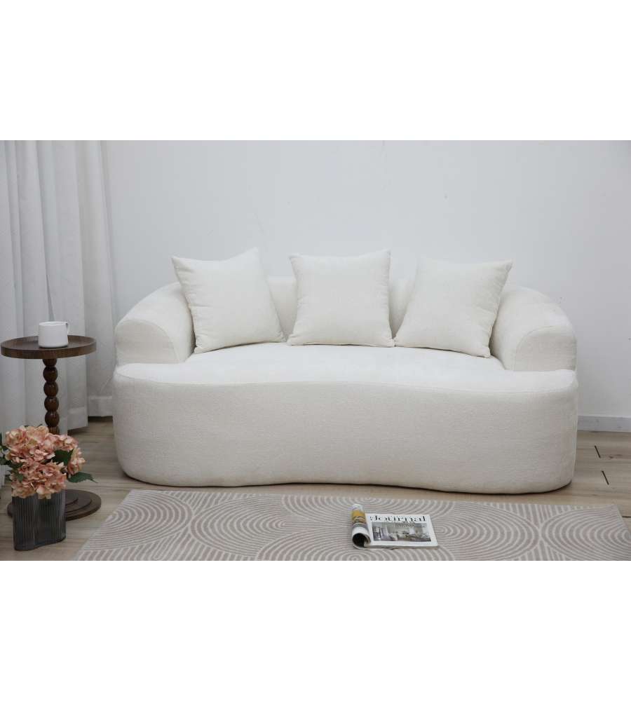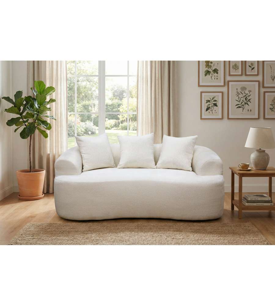 Divano 2 posti Domo Mea in bianco, design moderno e pratico, imbottitura morbida per un comfort ottimale. Facile da trasportare grazie al sistema sottovuoto. Include 3 cuscini. Capacità max 200 kg. Il divano che ti arriva in scatola!Capacità: