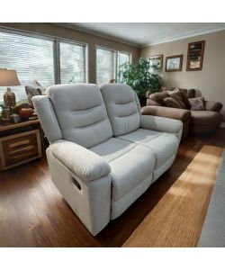Set salotto reclinabile Domo Mea: poltrona, divano 2 e 3 posti in tessuto greige. Comfort, stile e relax in un'unica soluzione per il tuo soggiorno.