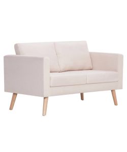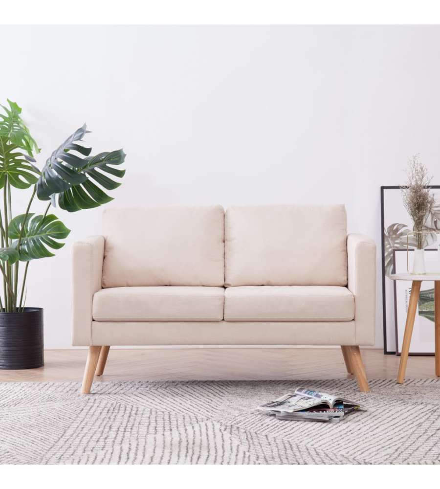 Divano a 2 posti in tessuto crema, elegante e comodo. Struttura in legno, cuscini imbottiti, federe lavabili. Dimensioni: 116 x 70 x 73 cm, altezza seduta 40 cm. Ideale per casa o ufficio.Altro 2: