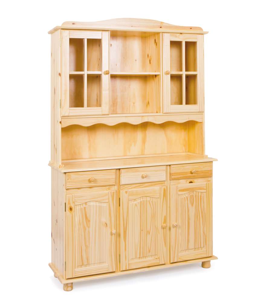 Credenza in pino massello, finitura naturale, con 2 ante e 3 cassetti. Dimensioni: 130 x 43/32 x 198 cm. Venduta in kit di montaggio.Spedizione gratuita: