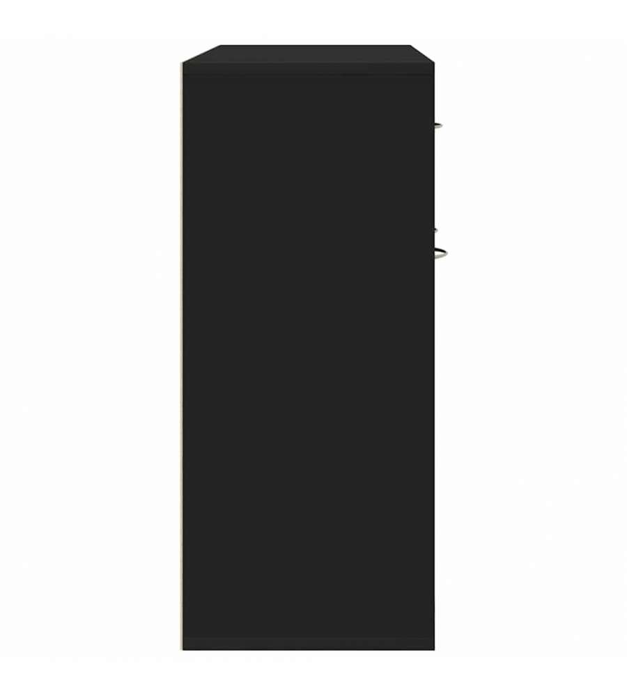 Descrizione: Credenza nera minimalista 88x30x70 cm in truciolato resistente. Include 1 ampio cassetto e 3 ante per un'ottima organizzazione. Design elegante, facile da montare, perfetta per ogni ambiente.
