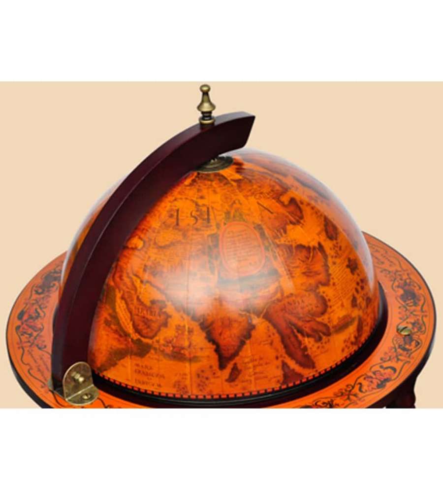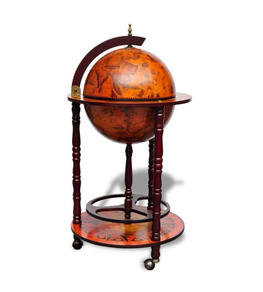 Elegante minibar a forma di globo in legno massello di eucalipto, ideale per riporre bottiglie e bicchieri. Montato su ruote per un facile spostamento. Include una mappa del mondo antico. Dimensioni: 47 x 102 cm. Bottiglie e bicchieri non inclusi.Ruote:
