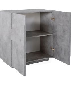 Credenza Ping 2 ante, 86x81.2x44.2 cm, finitura cemento Bronx, melaminico, ideale per soggiorno e sala da pranzo.