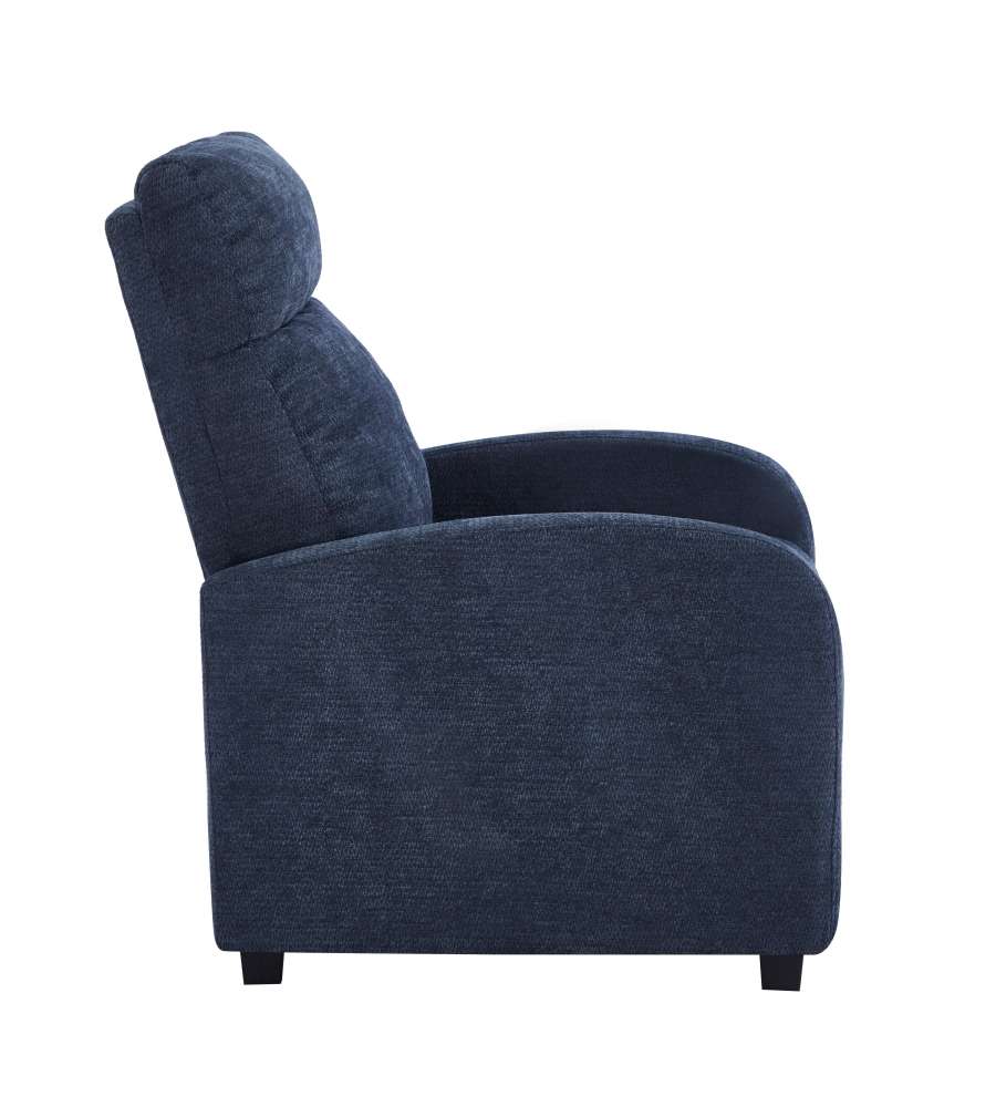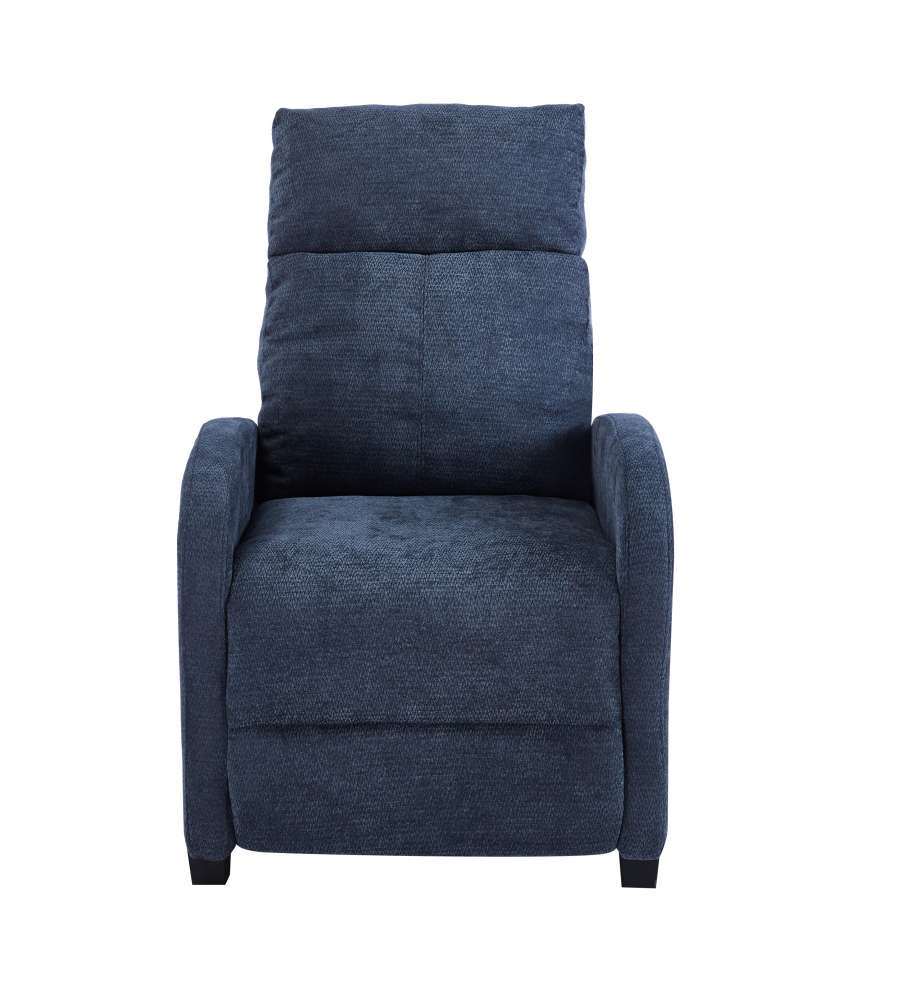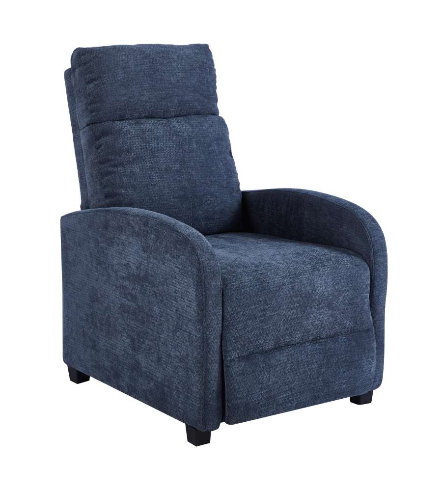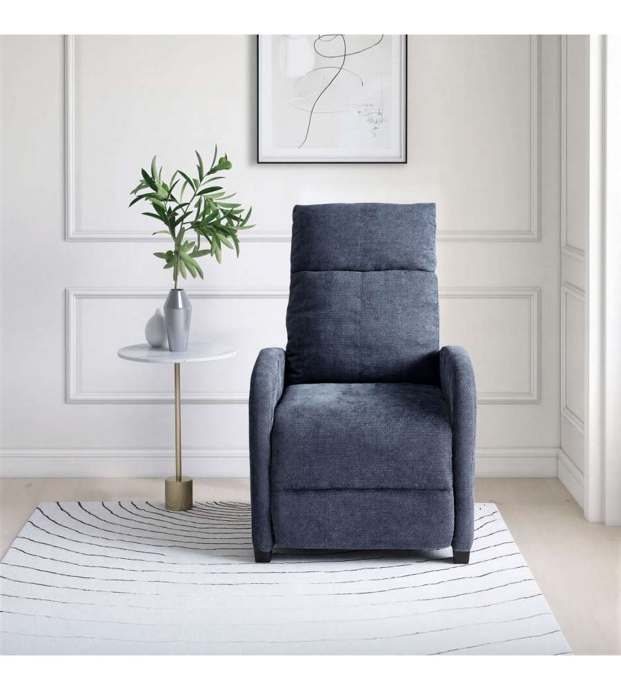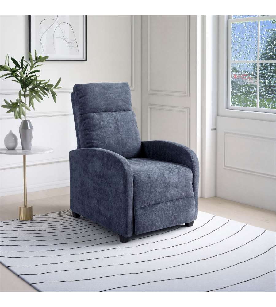 Poltrona reclinabile in velluto blu, dimensioni 80x66x95 cm, struttura in metallo. Peso 17,6 kg, portata 150 kg. Altezza seduta 45 cm, profondità 50 cm. Assemblaggio rapido in 15 minuti. Comfort ed eleganza per ogni ambiente.Portata: