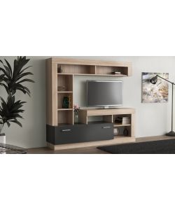 Parete soggiorno in stile moderno, colore rovere chiaro e antracite. Spessore pannelli 15 mm, dimensioni 180x42x180 cm. Elegante e funzionale per interni contemporanei.Tipo imballo: