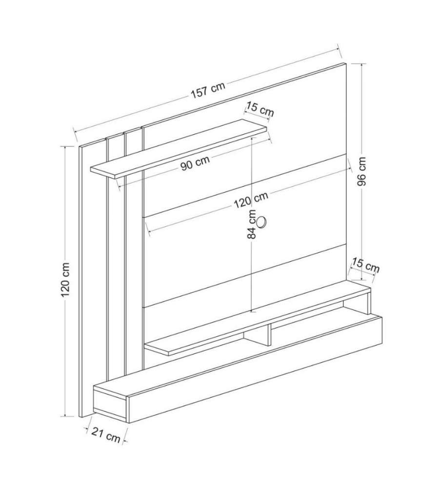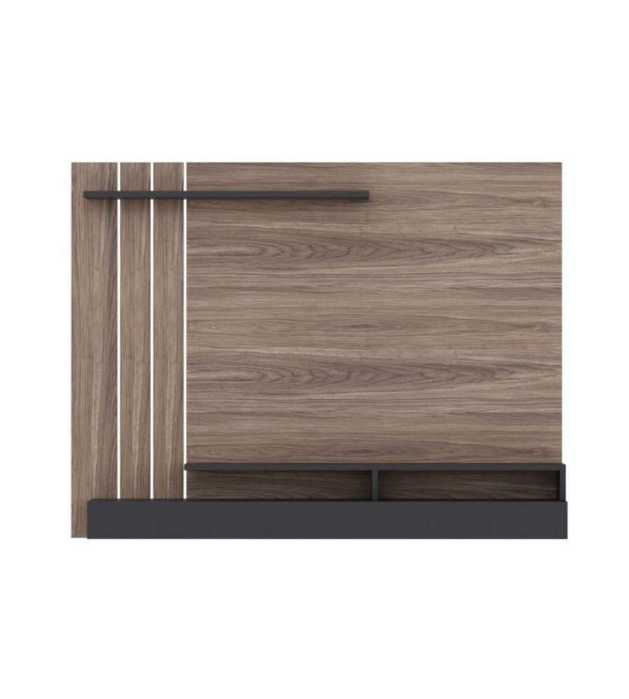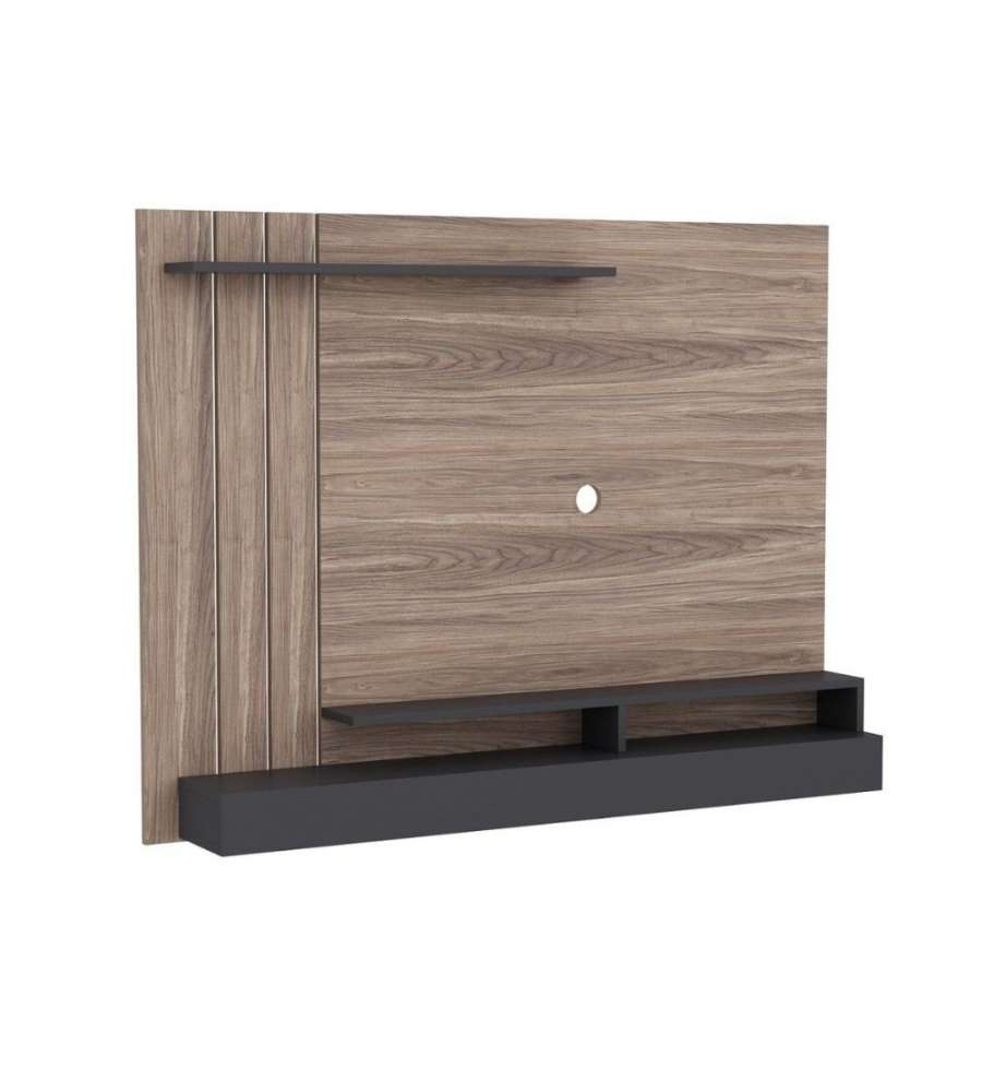 Parete porta TV moderna in truciolare alta qualità, colore noce con mensole antracite. Misure 157x21x120 h cm, spessore 18 mm, dotata di foro passacavi. Ideale per living, salone o studio. Prodotto fornito smontato.Ripiani: