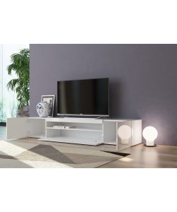 Il porta TV DAIQUIRI ? un nostro bestseller e trova la sua perfetta collocazione nella zona Living dove unisce estetica, design originale ed elevata funzionalit?, 100% made in Italy. Il porta TV DAIQUIRI ? un complemento che si distingue per le grandi dimensioni e un design unico. La struttura ? costituita da un mobile basso molto ampio e solido con un piano lungo 200 cm che pu? formare la base d'appoggio di televisori di grandi dimensioni. Presenta 3 sezioni contenitive, 2 ante laterali e un'anta centrale a ribalta e nella parte superiore un vano a giorno molto capiente. La struttura e i frontali sono in melaminico bianco lucido lucido, certificato FSC. ? adattabile a diversi stili di arredo grazie alla sua forma lineare. viene fornito in kit di montaggio e dotato di istruzioni semplici e dettagliate.