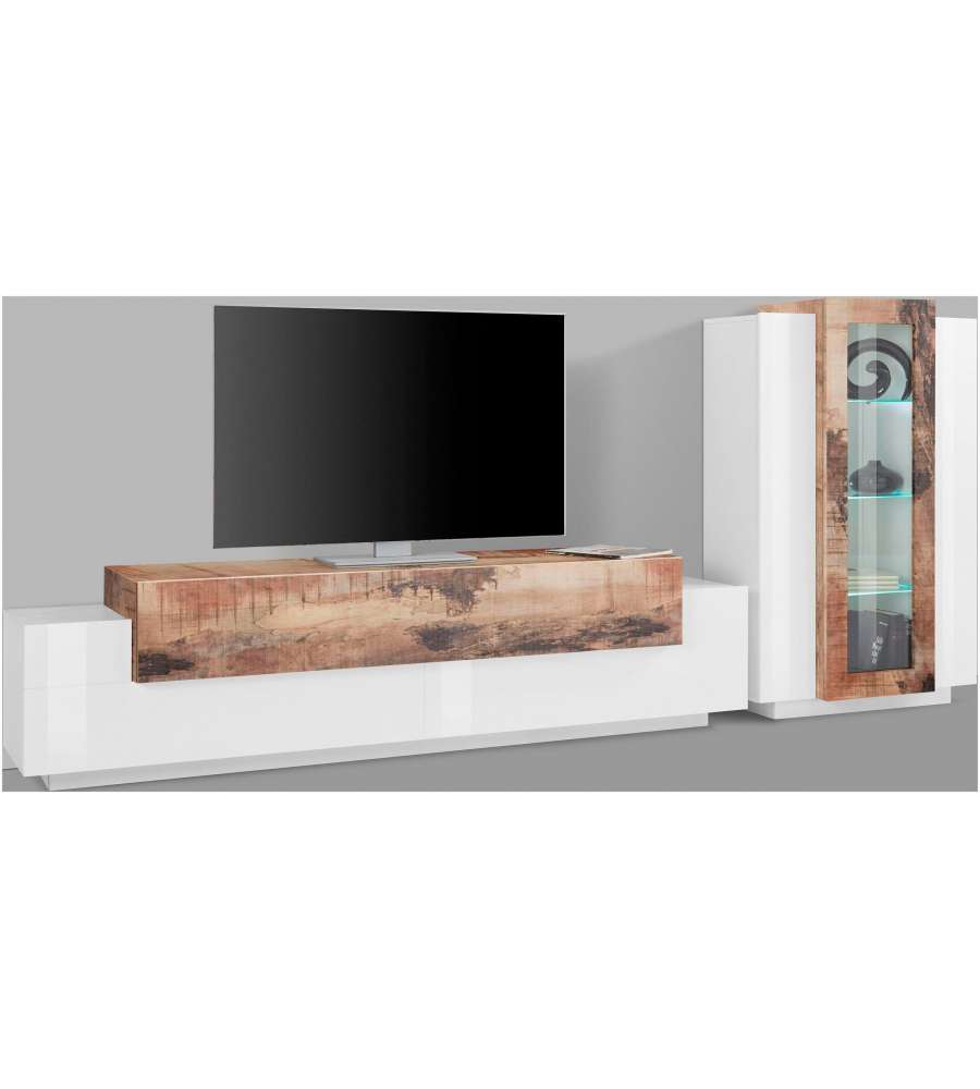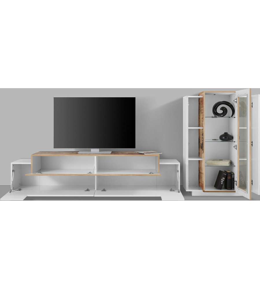 Il soggiorno CORONA ? un nostro bestseller e trova la sua perfetta collocazione nella zona Living dove unisce estetica, design originale ed elevata funzionalit?, 100% made in Italy. Il soggiorno CORONA ? costituito da un porta TV e da una vetrina. Il porta TV ? molto ampio e solido con una doppia profondit? e doppia altezza. Il piano lungo 150 cm pu? formare la base d'appoggio di televisori di grandi dimensioni. Presenta 3 sezioni contenitive 2 ante a L laterali a ribalta e un'anta centrale sempre a ribalta. Grazie alle sue grandi dimensioni, il porta TV garantisce ampio spazio di utilizzo. La vetrina ha 2 ante laterali e una anta centrale di pannello riquadrata con vetro con all'interno 4 ripiani dietro le ante laterali e 3 ripiani in vetro mentre nella parte centrale ci sono 3 ripiani in vetro. La struttura ? in melaminico colore bianco e le ante sono in melaminico colore bianco lucido e acero pereira, certificato FSC. Viene fornito in kit di montaggio e dotato di istruzioni semplici e dettagliate.