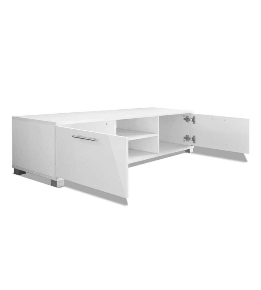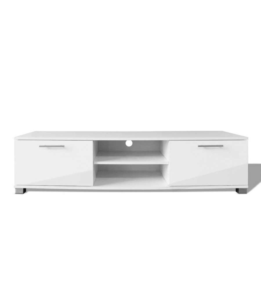 Mobile TV Bianco Laccato Lucido, dimensioni 120x40,3x34,7 cm. Design moderno, ideale per soggiorno o area intrattenimento. Peso 22 kg.