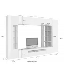 La Parete Soggiorno Egypt unisce estetica e funzionalità in un unico prodotto, ideale per chi desidera rinnovare l'ambiente living con uno stile contemporaneo e sofisticato. La combinazione di colori e materiali offre un look moderno che si adatta a diverse decorazioni. Perfetto per chi cerca un pezzo di arredamento funzionale con ampio spazio di stoccaggio e superfici espositive.