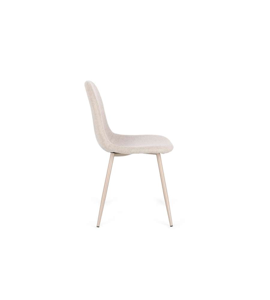 Sedia imbottita New Irelia Bizzotto, struttura in compensato con schienale e seduta comodi. Gambe in acciaio tortora verniciato, rivestimento in poliestere beige. Dimensioni: 44x53x84 cm, montaggio a vite. Ideale per ogni ambiente.Altezza seduta:
