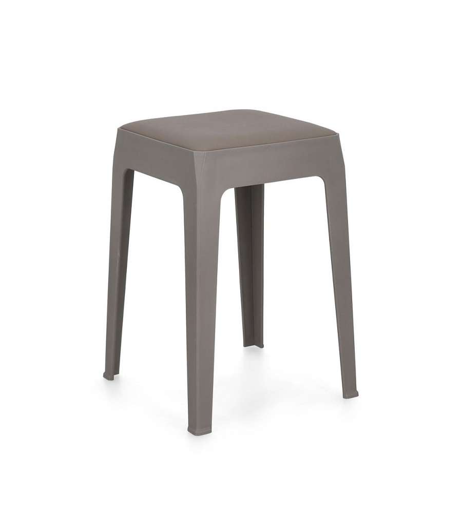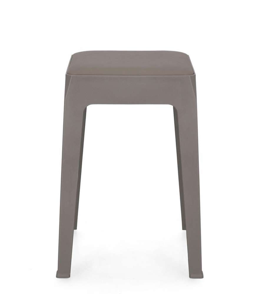 Sgabello minimalista in similpelle Grigio Scuro con struttura in polipropilene. Dimensioni compatte (33x33xH47 cm) e peso leggero (1,6 kg). Ideale per arredare soggiorni, cucine e anche bar, unisce comfort ed eleganza in un design moderno.Altezza seduta: