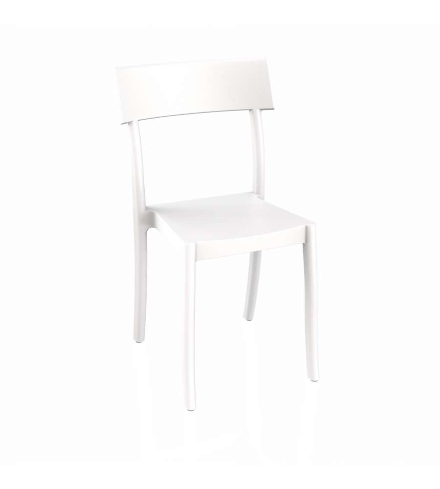 Descrizione: Sedia Milly in polipropilene rinforzato con fibra di vetro nel colore bianco. Ideale per uso indoor e outdoor.