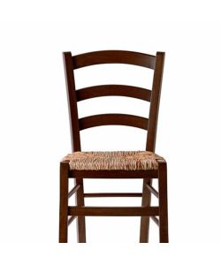 Descrizione: Sedia elegante con seduta impagliata e struttura laccata in finitura noce.