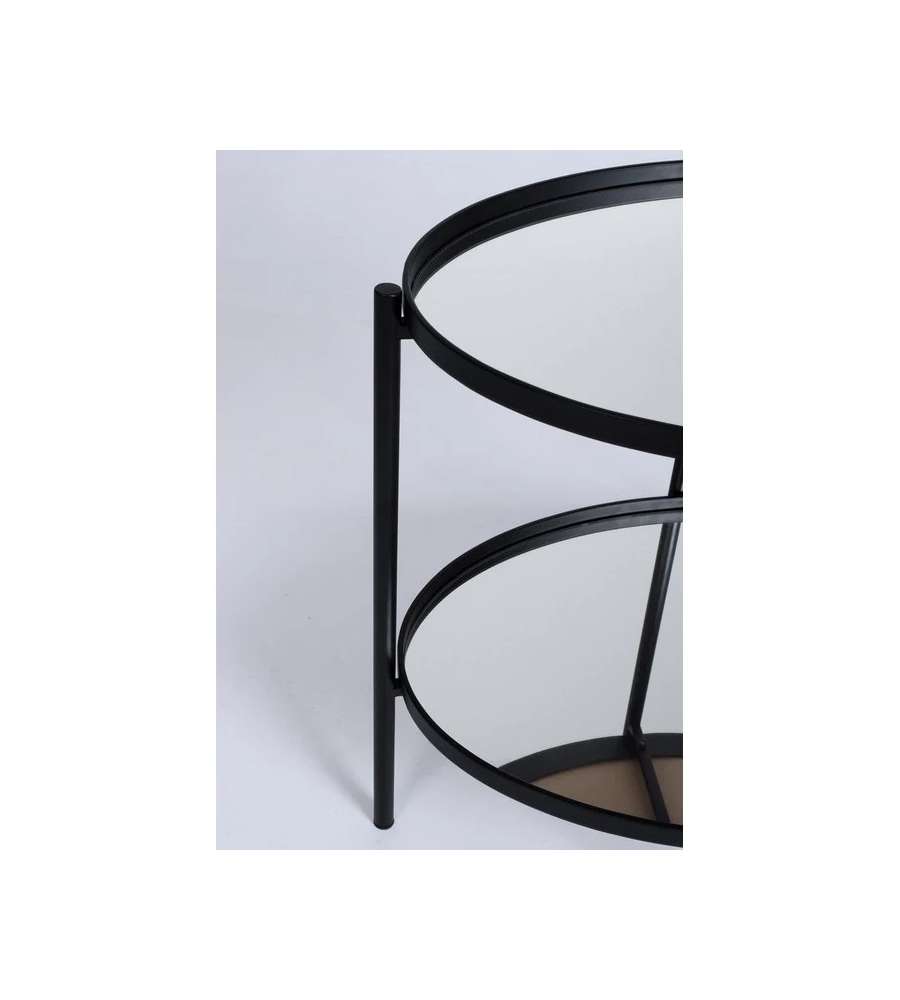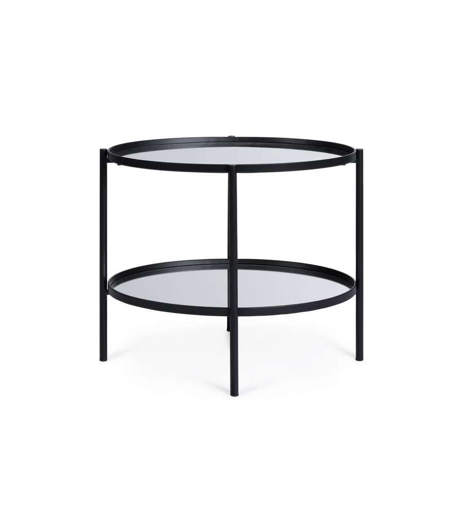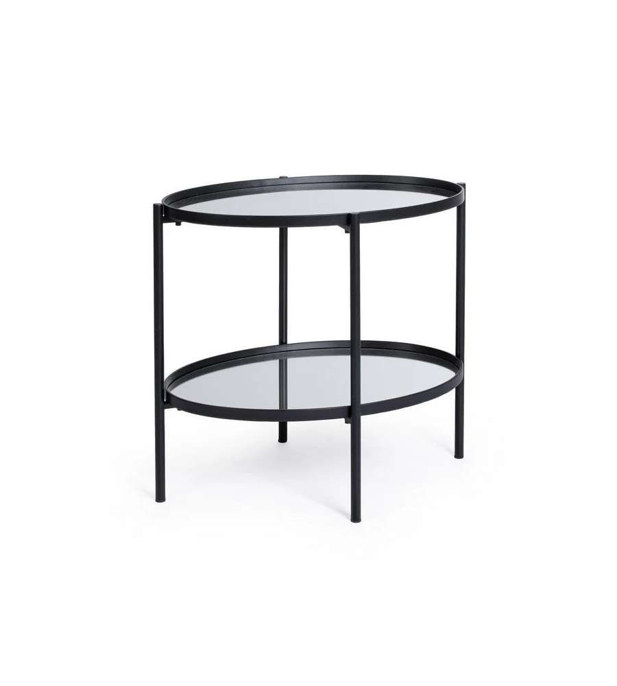 Tavolino ovale con struttura in acciaio verniciato a polvere, due ripiani in vetro a specchio. Design moderno ed elegante, ideale per soggiorni, camere da letto o ingressi. Dimensioni: 64x44x55,5 cm, peso 6,05 kg. Assemblaggio richiesto.Ripiani: