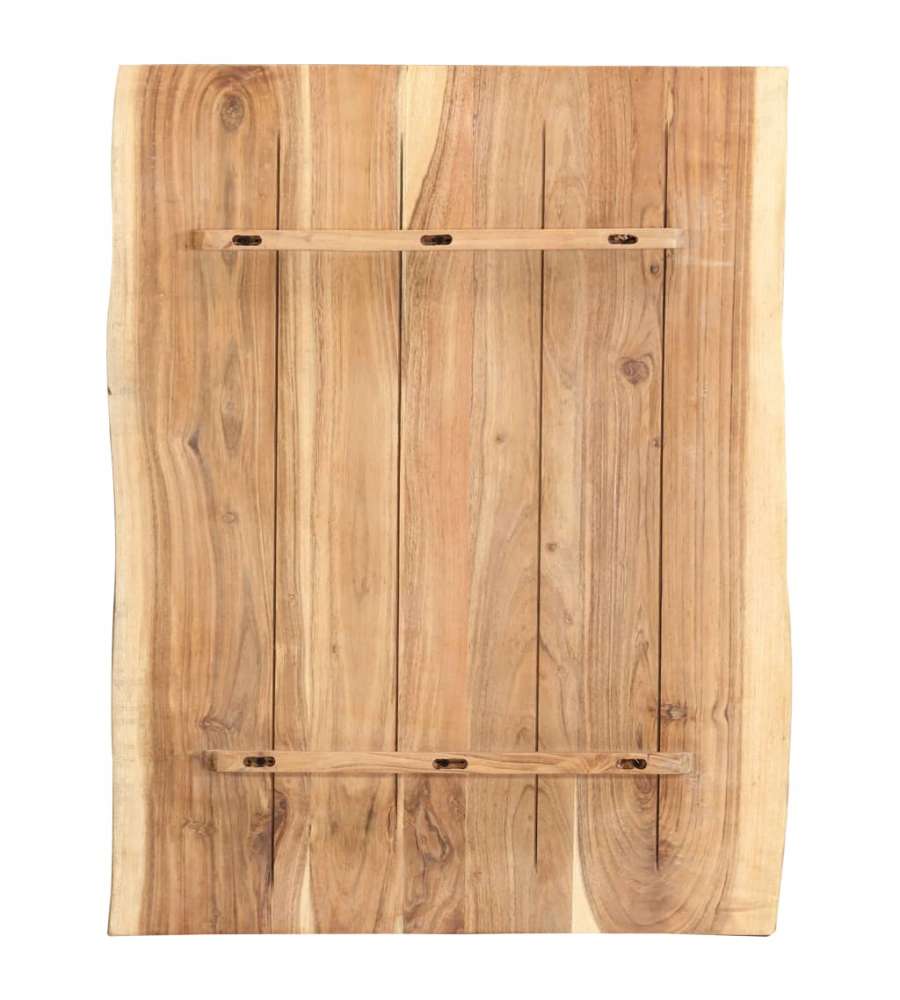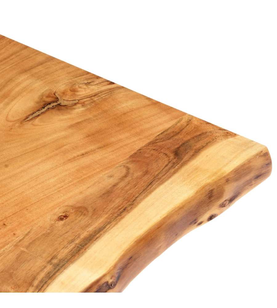 Questo piano del tavolo della cucina ? realizzato in legno massello di acacia, un legno duro tropicale solido, robusto e durevole. Il legno massello di acacia ? stato lucidato, verniciato e laccato per renderlo impermeabile e proteggerlo dall'umidit?. Questo piano per cucina ? realizzato a partire da un tronco d'albero ed ? caratterizzato da un bordo in legno vivo che preserva la naturale bellezza del legno.