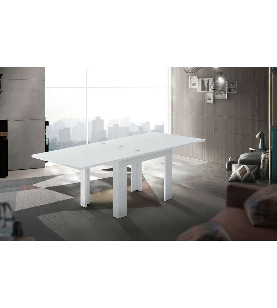 Tavolo allungabile a libro JESI, dimensioni 90/180 cm, design moderno in bianco lucido. 100% made in Italy, combina estetica e funzionalità. Altezza 75 cm, materiale melaminico.