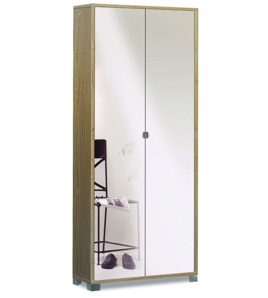 Struttura sp. 18mm ed ante con specchio, bordi ABS. Contiene 8 ripiani regolabili. Maniglie in alluminio e piedini verniciati cromo satinato (bruniti con struttura Ossido o Titanio). Mobile in kit.Altro 2: