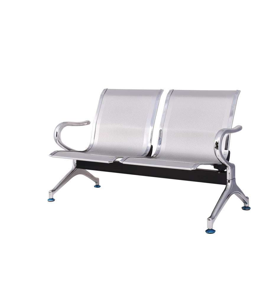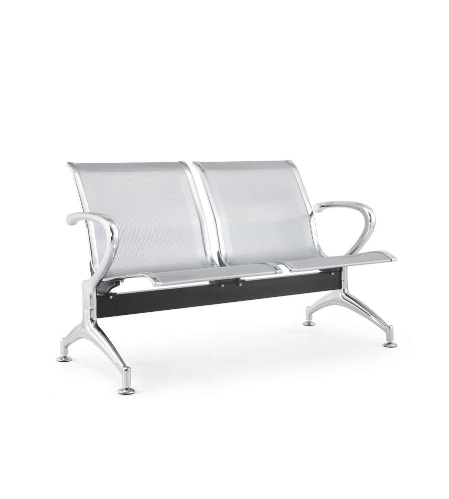 Panca per sale d'attesa Sedute in acciaio microforato, con trattamento antiruggine e verniciatura elettrostatica Profili, gambe e braccioli in acciaio cromato Spessore lamiera: mm 1,5 Il tavolino è opzionale e sostituisce una delle seduteCapacità:
