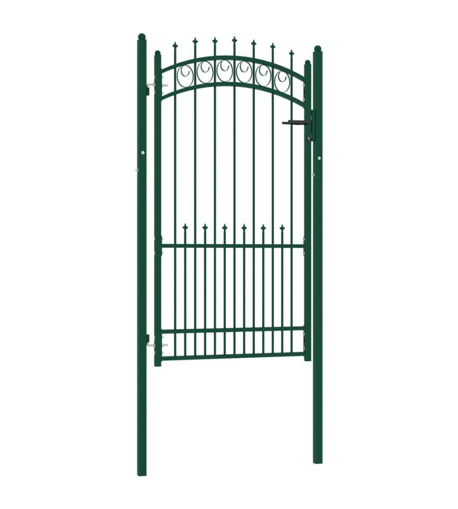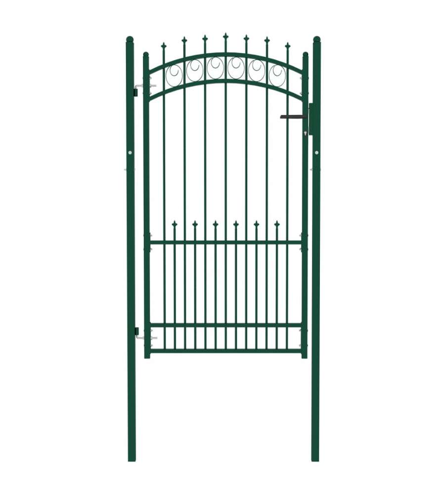 Fabbricato in acciaio robusto, il cancello d'ingresso ? verniciato a polvere per resistere a ruggine e corrosione. Grazie alle barre verticali con punte e ai robusti sostegni orizzontali di rinforzo per il telaio, il nostro cancello da giardino offre la massima sicurezza. In aggiunta, il design ad arco conferisce un tono elegante all'ingresso. ? inoltre dotato di una serratura con tre chiavi e viene fornito con due pali robusti, dotati di resistenti cerniere, per una facile installazione.